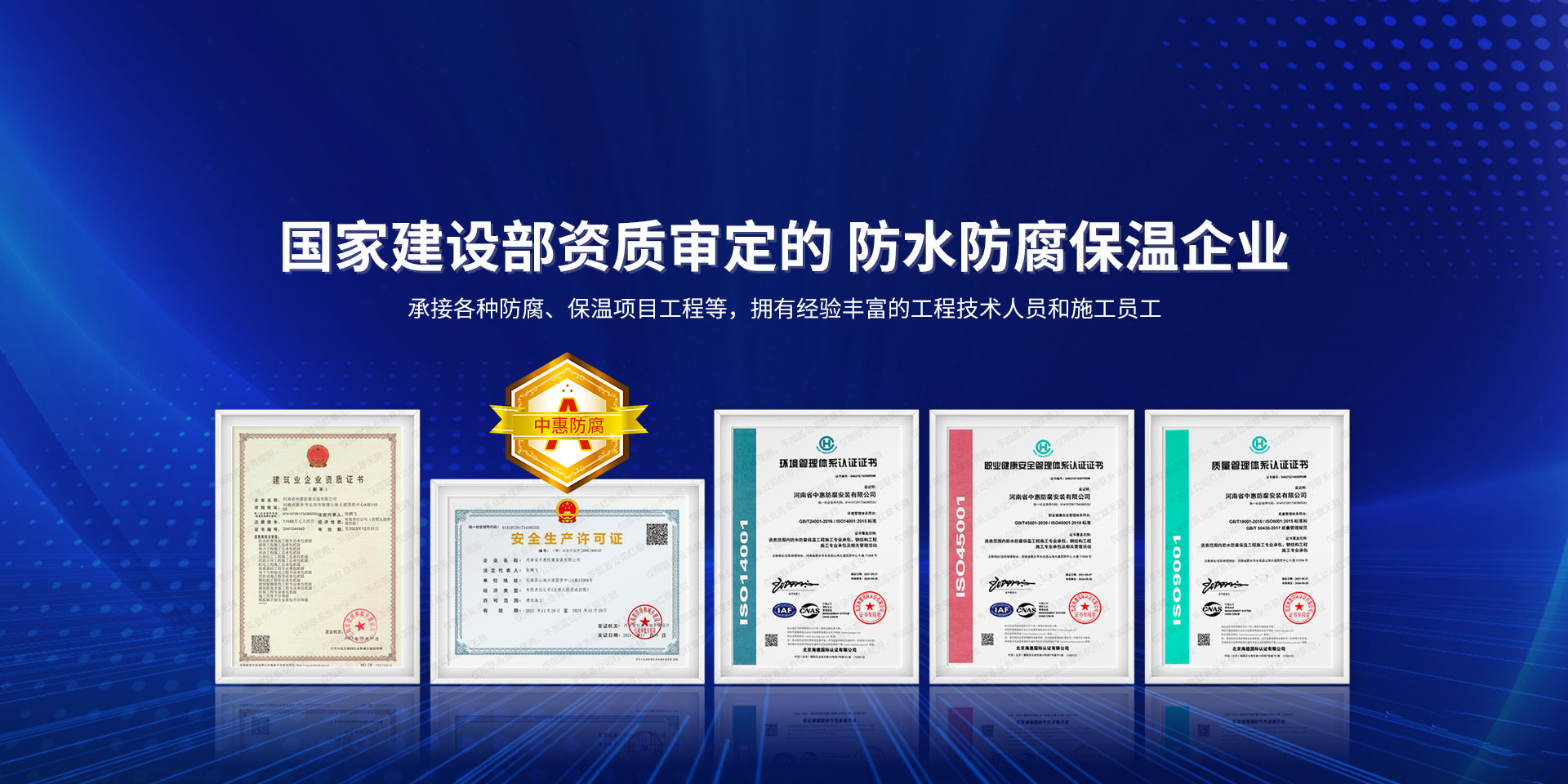 公司經營范圍:防水防腐保溫工程;消防設施工程;建筑裝修裝飾工程;建筑機電安裝工程;電力工程;建筑工程;石油化工工程;工業清洗工程;油罐清洗工程;鋼結構工程;環保工程;模板腳手架工程;電纜防火封堵、防污閃噴涂、外墻外保溫工程;各類施工勞務作業;設備維修、船舶鉚焊、涂裝;電力工程材料、建材、防水材料、防火材料、防腐保溫材料銷售,并相繼通過了GB/T19001-2008idtISO9001:2008GB/T50430-2007質量管理體系認證證書。GB/T24001-2004idtISO14001:2004環境管理體系認證證書。GB/T28001-2011idtOHSAS18001:2007職業健康安全管理體系認證證書。公司是中國防腐蝕于防護協會、中國施工企業管理協會、電力協會和中國鋼結構防水協會會員單位。 公司的經營業務涵蓋了石油、化工、電力、冶金、煤炭、船舶、國防、燃氣、水利、環保、交通運輸、航空及國防軍工和輕紡市政等行業的防腐保溫絕熱設備。鋼結構安裝、防火、防水、金屬噴鍍、聚脲噴繪、陰極保護、防滲透堵漏、玻璃鋼及各種磚版材料襯里、橡膠襯里、煙氣硫和耐酸溶劑腐蝕等工程施工。公司連續十年榮獲“省市先進施工企業”“安全生產先進單位”“重合同,守信用企業”和“AA***資質企業”的稱號。2000年被命名為市級文明單位,2002年被國家工商行政管理局命名為“重合同,守信用的企業”、被中國工業防腐蝕技術協會命名為“防腐蝕企業,能源節約及環境保護領域有豐富的經驗和***的業績。工程一次交驗合格率100%。其中攀枝花鋼鐵公司煉鐵廠四號高爐及熱風爐防腐工程、上海寶鋼公司煤氣柜防腐工程、撫順石油一廠裝置防腐項目、齊魯石化公司稀烴廠高塔防腐工程、吉林化學工業公司煉油廠油罐防腐工程、天津石化熱電廠六號爐頂棚聯絡管保溫工程、大慶油田(太倉)力神泵業工程、中國化學工程第十一建設工程、中原油田勘探局工程、中國石化銷售有限公司華北分部、魯皖輸油管道工程、貴州開磷息烽合成氨工程、陜西黃陵煤化工程、中國石油天然氣西部管道塔里木輸油工程、邯鋼集團邯寶鋼鐵公司煉鐵工程、德州供電工程、吉寶(南通)船廠工程,偃師華潤熱力工程、鄭州熱力總公司。 河南省中惠防腐安裝有限公司愿以豐富的施工經驗,***的技術,***的設備,***的管理,***的服務,竭誠為國內外廣大的用戶提供***滿意、******的工程作品。 我公司愿與國內外同仁一道,團結協作,共同推進防腐蝕行業發展! 公司地址:河南省長垣縣建設路北段360號 固定電話:0373-8866488 郵編:453400 網址:http://www_zhff_com_cn.lenorear.com